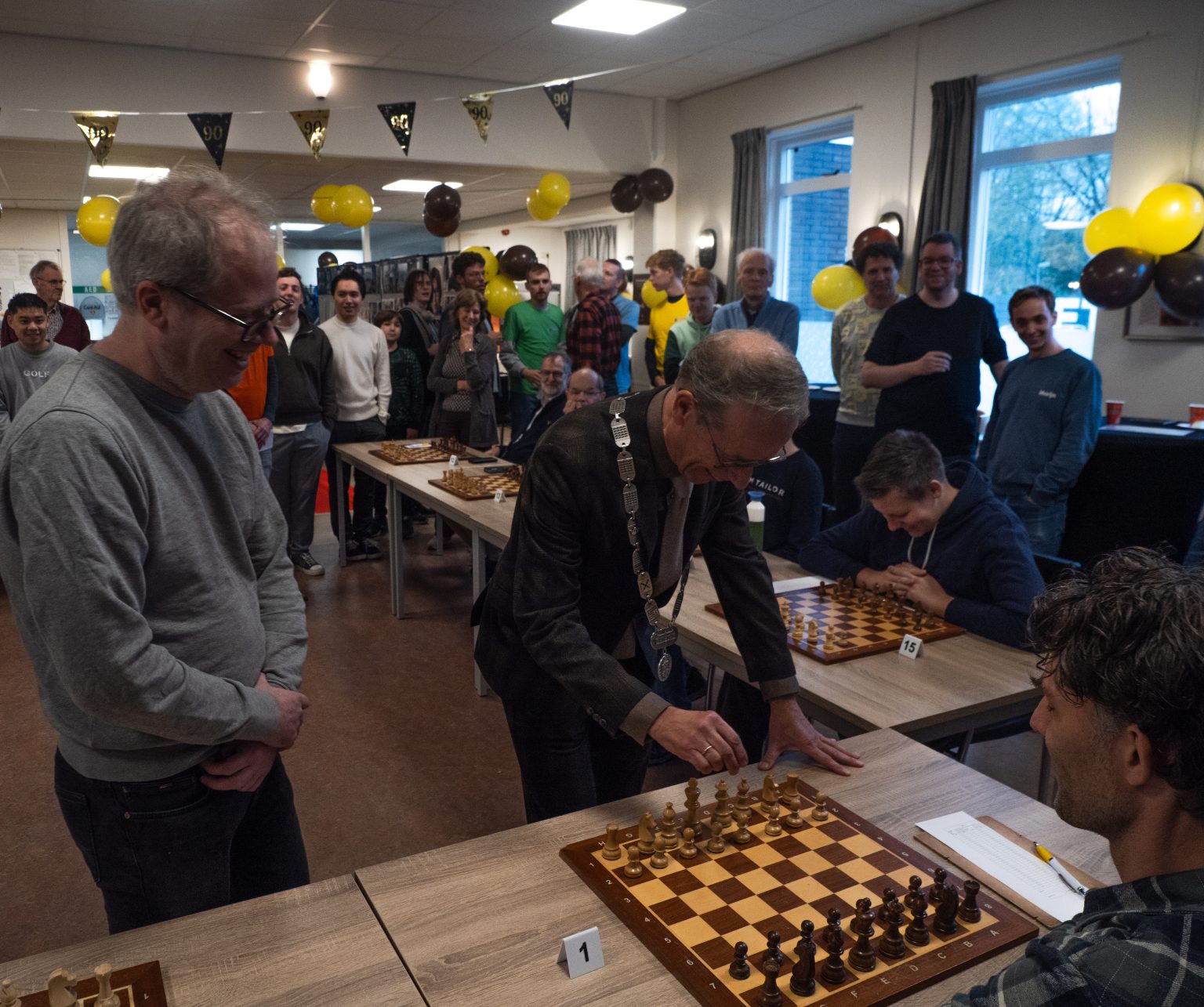 Het is bijna 90 jaar geleden dat Max Euwe wereldkampioen schaken werd, en logischerwijs werden er in 1935 heel wat schaakverenigingen opgericht. Daarom dacht ik dat 2025 zou leiden tot een stapel jubileumboeken op de deurmat, waar van alles op belandde behalve dat. Tot afgelopen zaterdag, al moest ik dat boek zelf op gaan halen, maar dat deed ik zeker niet met tegenzin. Schaakvereniging Sliedrecht, een heel bijzondere club (daarover straks meer) tikte de 90 jaar aan!